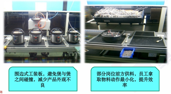 生產模式仿照精益短線,單人設備投入稍高正常生產線,單人效率較正常生產線高20%以上;
